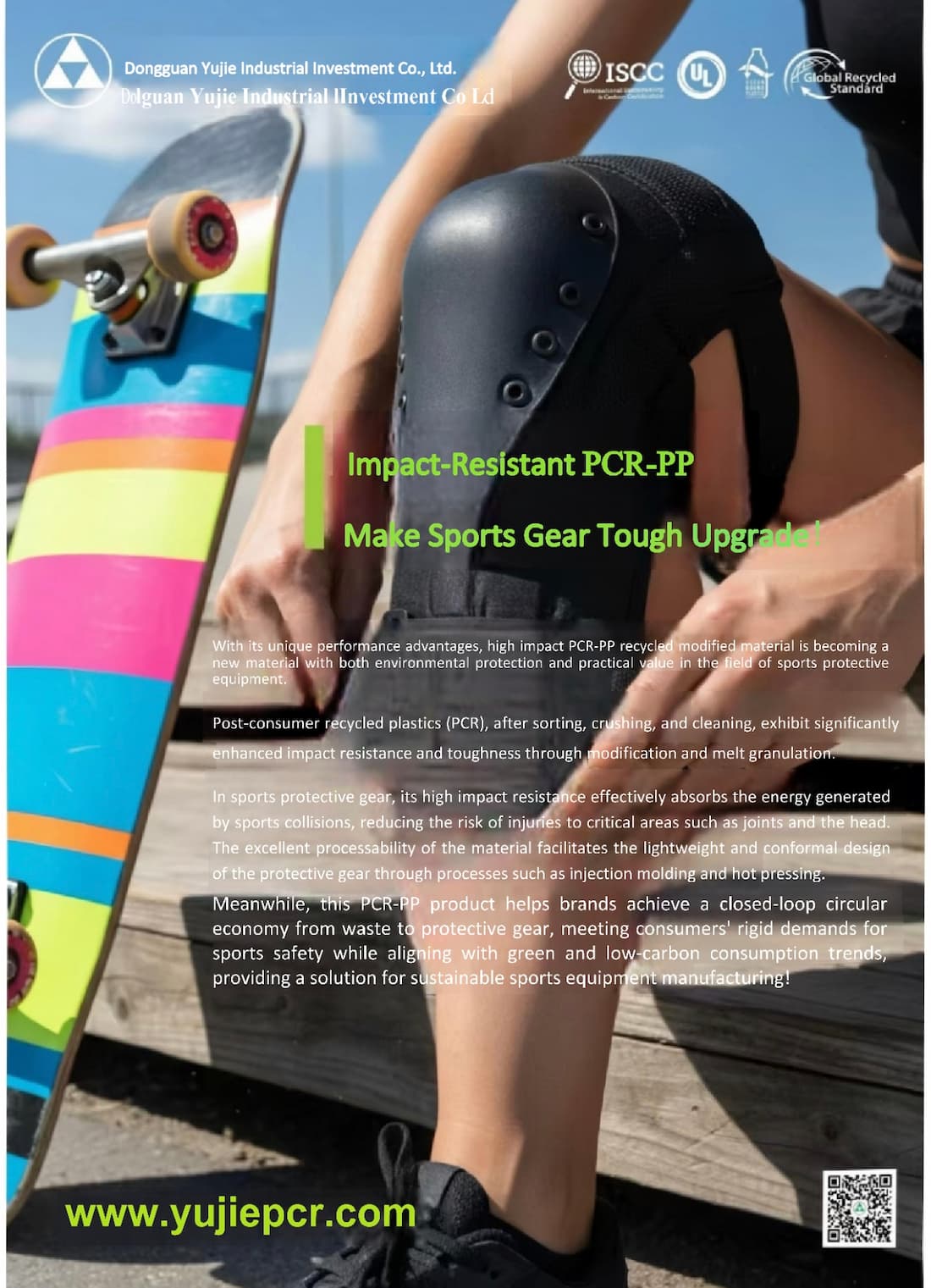 Yujie Industrial outdoor product materials are centered around modified PCR-PP (UV-resistant/toughened/weather-resistant), combined with recycled materials such as PCR-PC, PCR-ABS/PC-ABS, PCR-TPU, and PCR-PA6/66.