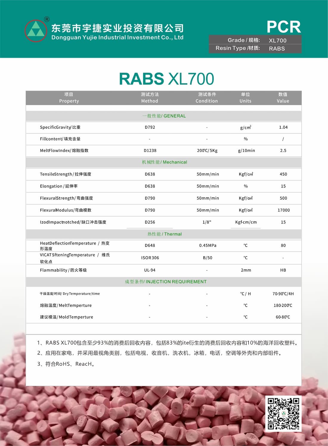 Yujie ABS products primarily consist of post-consumer recycled (PCR) modified ABS (RABS), including PC/ABS alloys.
